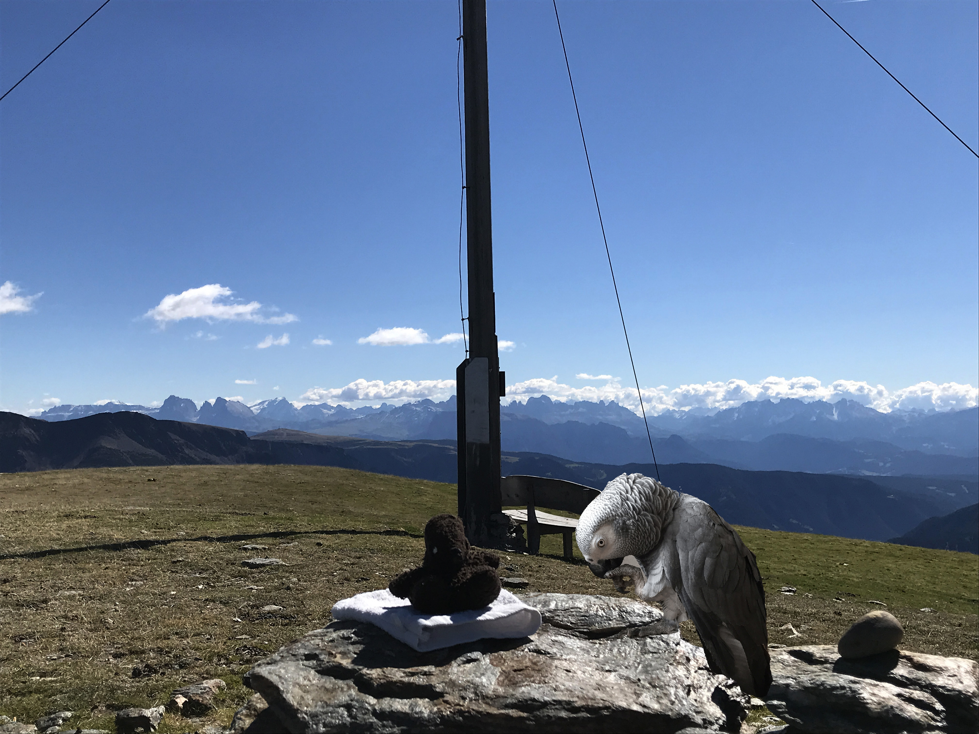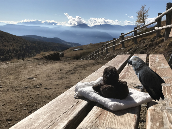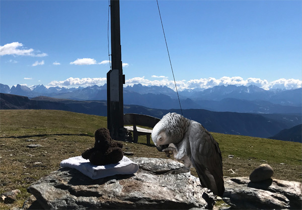 Flügel und Tatzen lahm machen Ozzi und Jahra eine Pause mit schönen Blick über Meran2000.