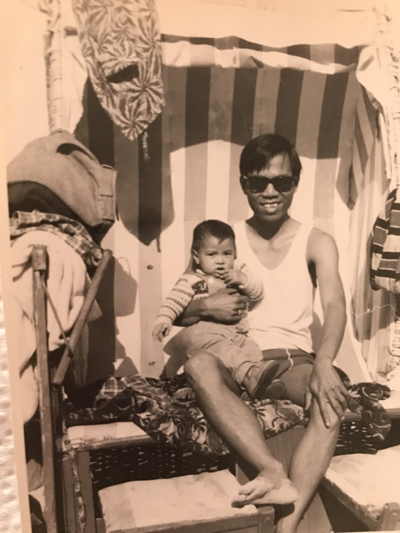 Paps mit dem süßesten Baby der Welt an der Ostsee.